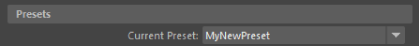 - 表示される新規プリセットの保存(Saving new preset)ダイアログ ボックスで、新しいプリセットの名前を入力します。 たとえば、「MyNewPreset」と入力します。