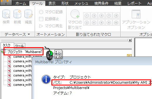 - プロジェクト名を右クリックして、ドロップダウン メニューの[プロパティ]をクリックし、プロジェクトの場所を決めます。