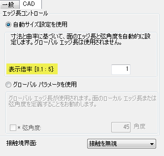 自動サイズ設定は、既に定義済みのローカル エッジ長と弦角度は上書きしません。