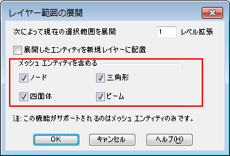 [レイヤー範囲の展開]ツールは、次のメッシュ エンティティのいずれかまたはすべてを含むオプションが含まれるように拡張されました。