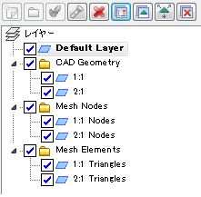 • CAD 形状メッシュ ノードメッシュ要素などのエンティティ タイプに基づいて、モデル エンティティはレイヤーに、またレイヤーはフォルダに自動的に配置されます。