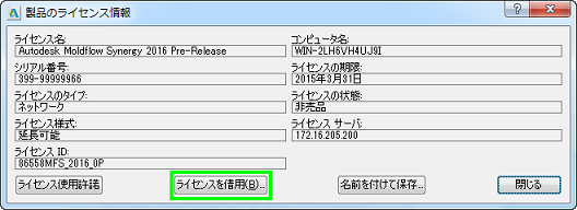 - [製品のライセンス情報]ウィンドウで、[ライセンスを借用]をクリックします。