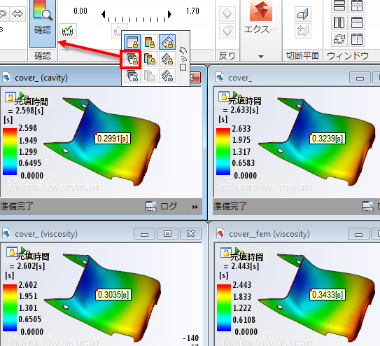 [確認] ツールは、モデル上の特定の位置における結果の正確な値を決定するために使用します。[すべてのビューのロック]ツールは、複数のスタディを比較するときに、すべてのビューをロックするのに使用します。これにより、1 つのスタディのモデルを操作すると、その変更が表示している他のすべてのスタディ内のモデルに複製されます。モデルの特定の同一位置における結果の値を確認する場合に、[確認]ツールと[すべてのビューのロック]ツールを組み合わて使用できるようになりました。