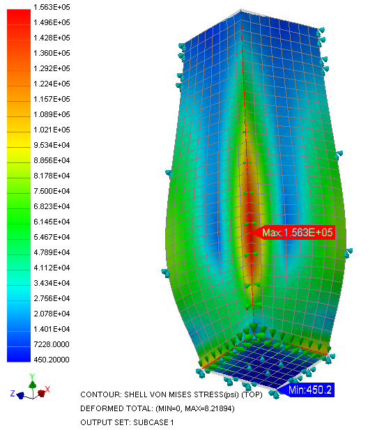In this exercise, we will conduct a nonlinear static analysis to explore the phenomenon of stress stiffening. The subject model is a flat walled tank that is 48 inches x 48 inches x 96 inches tall. The walls of the tank are flat and are subject to pressure loading which may lead to large deformation effects.