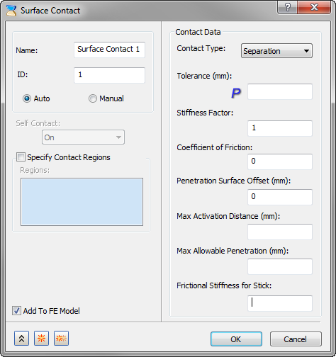 On the Surface Contact dialog, there are two options for defining contacts: