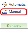 Assigning contacts manually allows for greater control over the contacting surface pairs. To do this, click Manual from the Contacts panel in the ribbon: