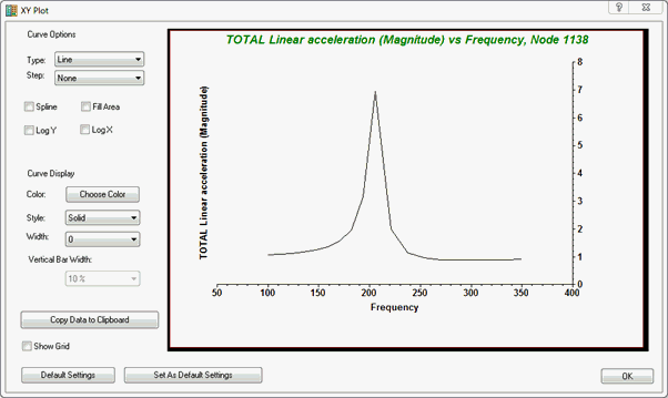 200 Hz 直後の大きなスパイクに注意してください。このピークは、214 Hz までの固有値解析の結果と一致します。