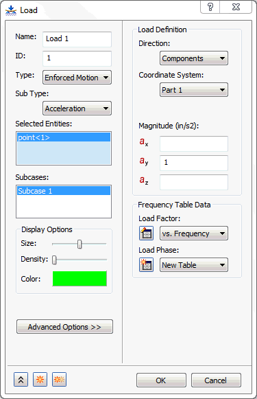 強制運動荷重(変位、速度、および加速度)を使用して、強制する方向を拘束する必要があります。これに違和感があるかもしれませんが、強制運動が拘束運動であることに留意してください。