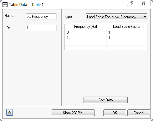- ドロップダウン メニューから[荷重スケール係数 vs 周波数]を選択します。