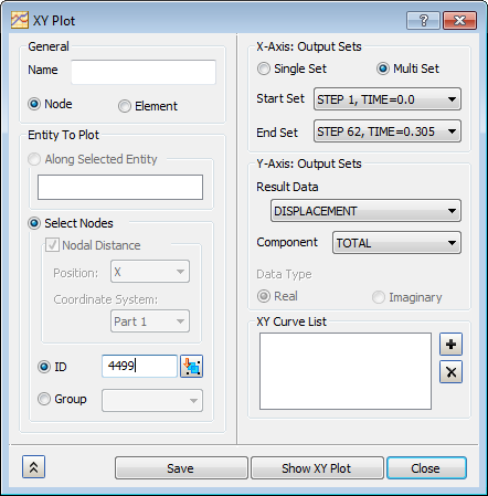 - [XY プロットを表示]ボタンをクリックします。[XY プロット]ダイアログ ボックスが表示されます。