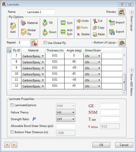 - これで、12 層の積層が作成されました。[OK]をクリックし、積層の定義を完了します。