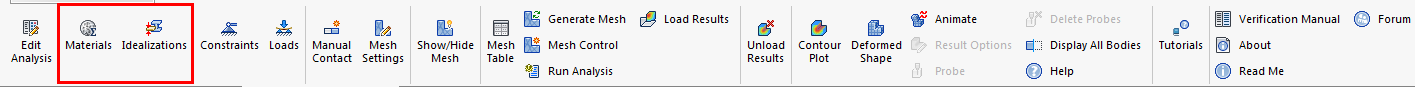 リボン(または CommandManager)の[準備]パネル内のコマンドは、Autodesk Nastran In-CAD を使用している CAD アプリケーションによって異なります。次の 2 つのコマンドは、Nastran In-CAD (Autodesk Inventor 用と SolidWorks 用)に共通のものです。