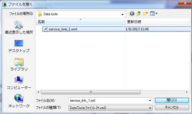 ダイアログ ボックスで、必要な DataTools ファイルがあるフォルダに移動してそのファイルを選択し、