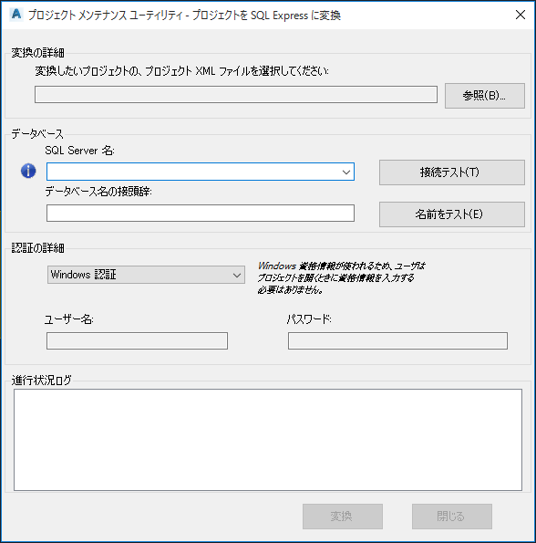 - プロジェクト XML ファイルのパスを入力または参照して SQL Express に変換します。
