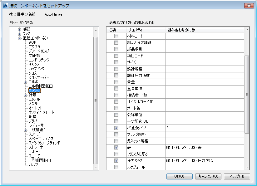 [配管接続の設定] - [結合のセットアップ] ([Plant 3D DWG 設定]ツリー ノード)