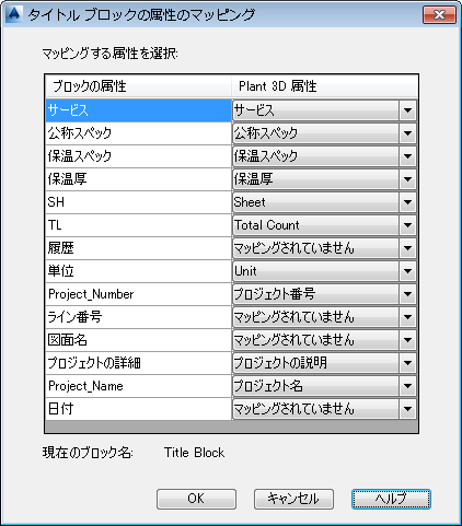タイトル ブロックの属性を Plant 3D のプロパティにマップします。