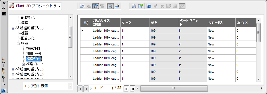 データ マネージャは、Plant データにアクセスし操作するこのとできるツールです。データ マネージャを使用すると、図面とプロジェクト データの表示、変更、書き出し、読み込みや、レポートの生成を行うことができます。