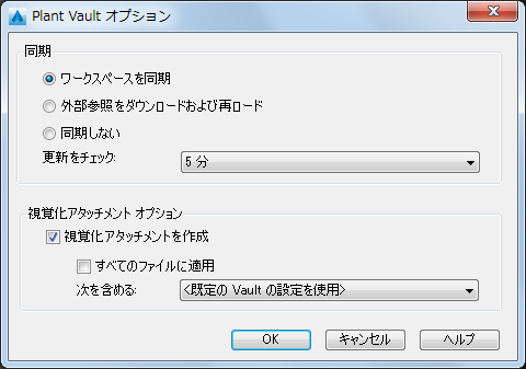 - 開いた図面によって参照されているファイルのみをダウンロードします。このオプションは、外部参照が同期されているようにしたい場合に使用します。プロジェクトの残りの部分は plantrefreshfromvault で同期されます。