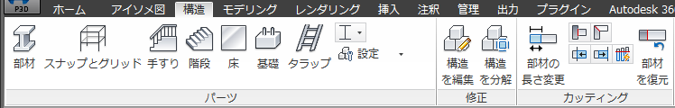 [構造]タブは 3D 配管ワークスペースの一部です。