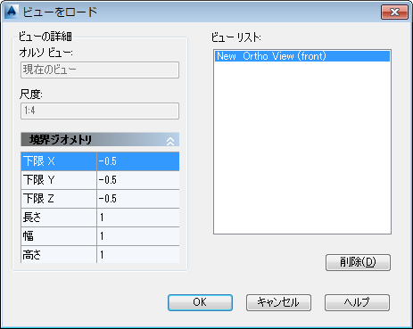 オルソ ビューを作成するための保存されている OrthoCube 設定をロードします。