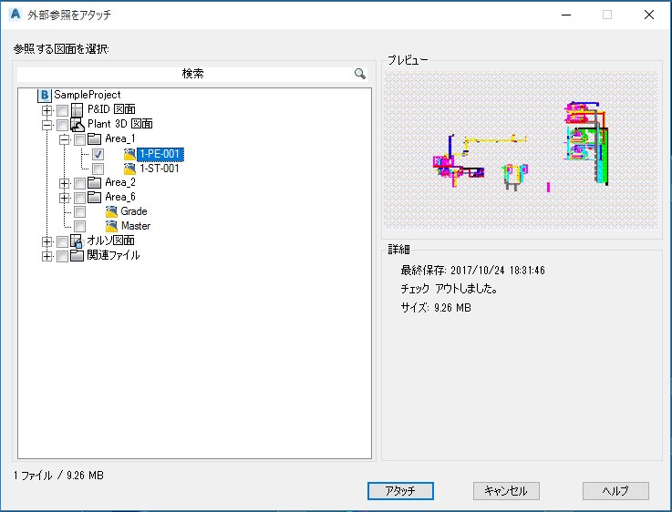 コラボレーション プロジェクトからプロジェクト図面ファイルをアタッチします。