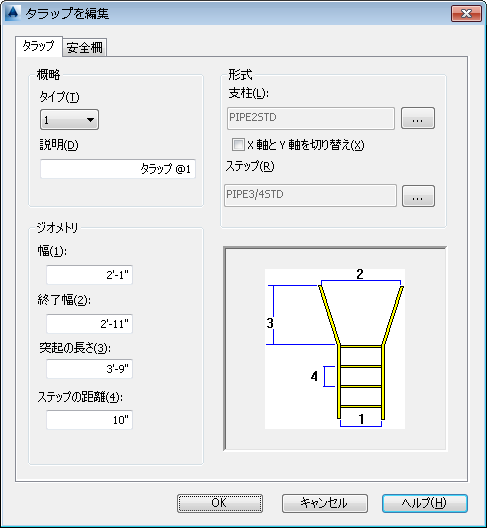 [安全柵]タブ([タラップを編集]ダイアログ ボックス)