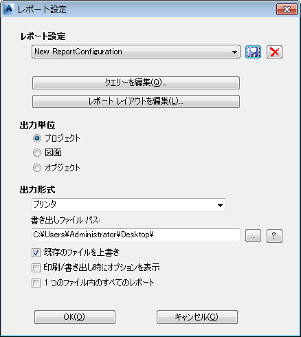 - [レポート設定]ダイアログ ボックスの[レポート設定]で、次の操作を行います。