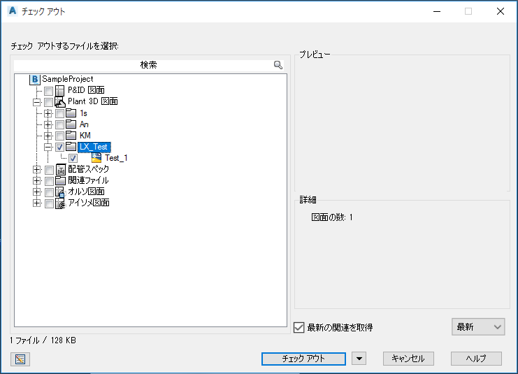 プロジェクト フォルダのすべての図面をチェック アウトするには