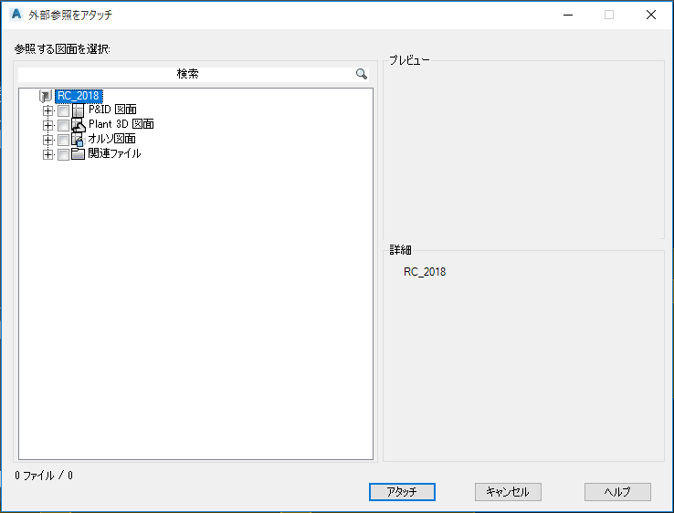 [関連をアタッチ]をクリックします。[外部参照関連ファイルをアタッチ]ダイアログ ボックスが表示されます。