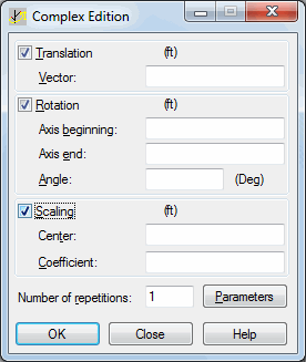 To complete the definition of complex editing, you define the number of repetitions and determine additional parameters. Clicking Parameters button opens an additional dialog.
