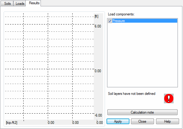 Click Calculation note to open a text editor containing a set of data and pressure diagrams. Click OK to close the dialog and start the preparation for generating loads.