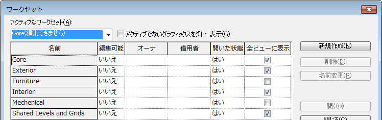 このグローバル設定では、プロジェクト ビューにおける各ワークセットの既定の動作が設定されます。個々のビューにおける各ワークセットの表示は上書きできます。