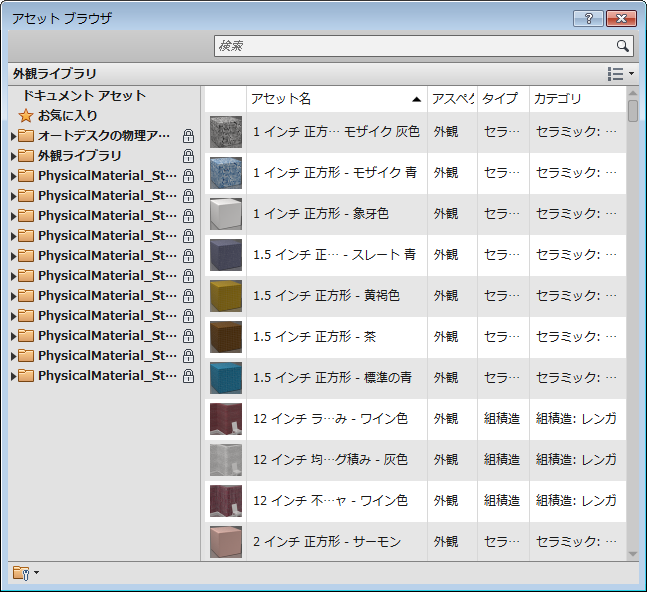[マテリアル アセット]をクリックします。