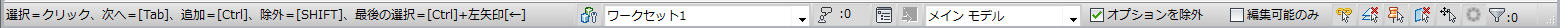 ステータス バーで[ワークセット]コントロールまたは[デザイン オプション]コントロールのみ非表示にするには、対応するチェック ボックスをオフにします。