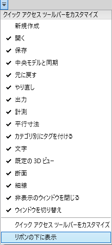 クイック アクセス ツールバーはリボンの上または下に表示することができます。設定を変更するには、クイック アクセス ツールバーで、[クイック アクセス ツールバーをカスタマイズ]ドロップダウン リスト