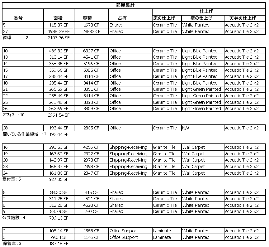 プロジェクトで建物コンポーネントのプロパティを変更すると、関連している集計表が自動的に更新されます。