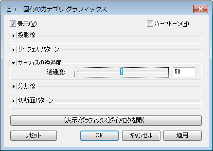 - 切断面パターン: 表示設定、色およびパターンを編集します。