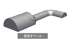 [見回す]コマンドを使用するときは、カーソルをドラッグしてモデルのビューを調節します。ドラッグすると、カーソルが[見回す]カーソルに変わり、モデルが現在のビューの位置の周囲を回転します。