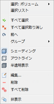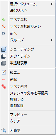 平面または等値面で右クリックした場合(平面タスクまたは等値面タスクがアクティブな場合)