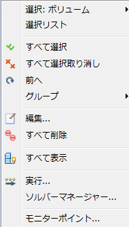 すべてのセットアップ タスクにおいて、右クリックメニューを使って選択タイプの変更や、アイテムの選択および選択解除、適切なクイック編集ダイアログを開く、等の操作ができます。加えて、現在行っているタスクに固有のコマンドにアクセスできます。