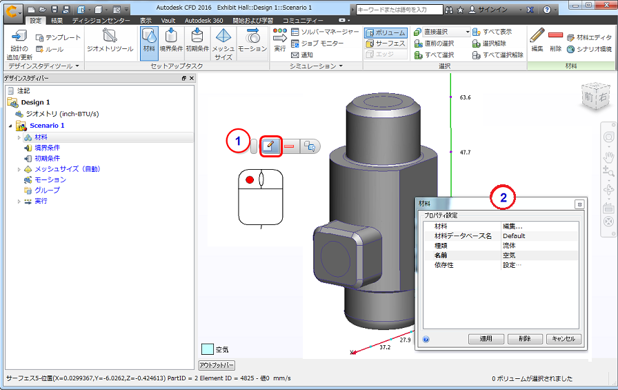 この章では、ユーザ インタフェースの主なコンポーネントと、Autodesk® CFD の基本的な操作について説明します。
