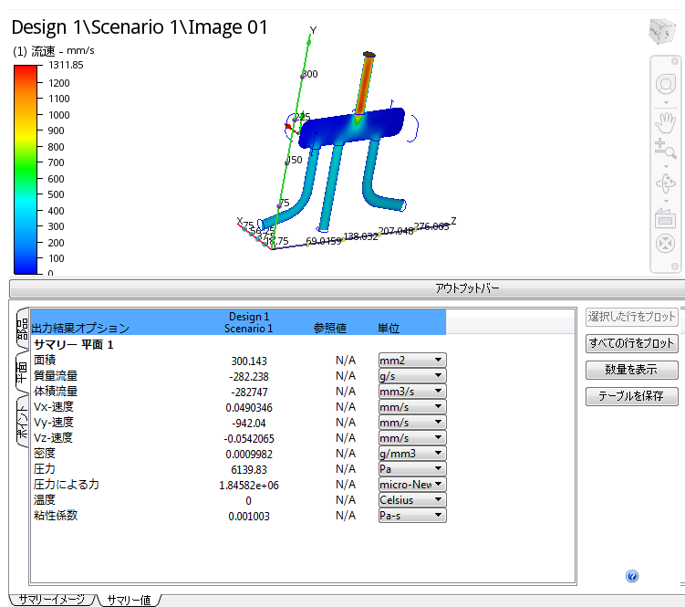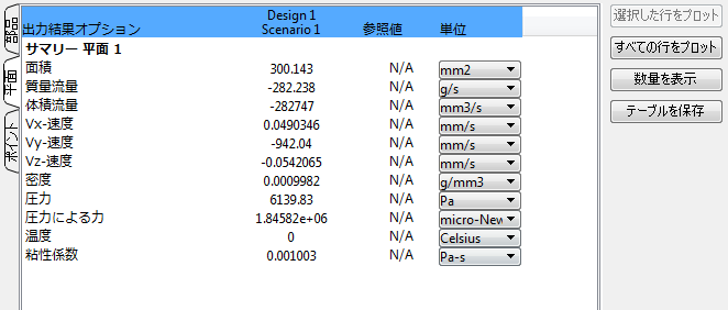 [サマリ項目](部品、平面、ポイント)の表形式データを確認するには、[サマリ値]をクリックします。これにより、サマリ イメージが非表示になります。表示するサマリ項目のタイプを切り替えるには、ウィンドウの左側にあるタブを使用します。