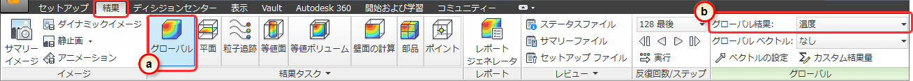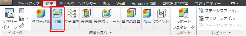 2. [結果] (タブ) > [結果タスク] (パネル) > [平面]をクリックします。