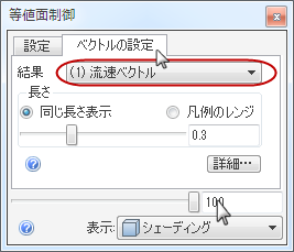 7. [ベクトルの設定]タブをクリックし、[流速ベクトル]を選択して、ベクトルを表示します。