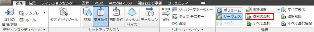8. [設定] (タブ) > [選択] (パネル) > [直前の選択]をクリックします。