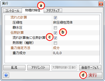 - c. [流れ計算後に伝熱計算]をオンにします。