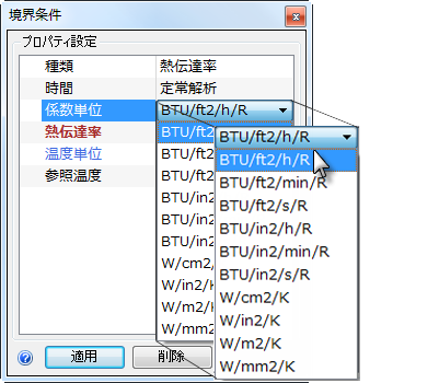 5. [単位]行で[BTU/ft2/h/R]を選択します。