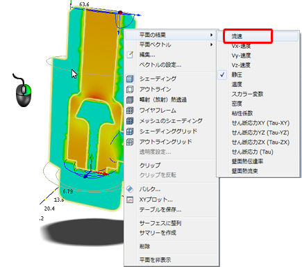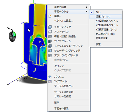 2. ベクトルを表示するには、平面を右クリックし、[平面ベクトル]、[流速ベクトル]をクリックします。