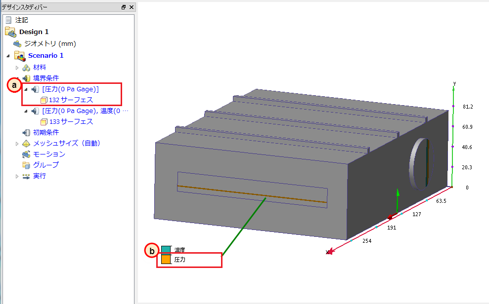 この手順では、流出口のスロットに周囲圧力の境界条件を割り当てます。