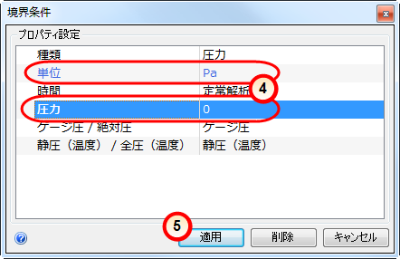 4. [単位]は[Pa]、[圧力]の値は 0 のままにします。